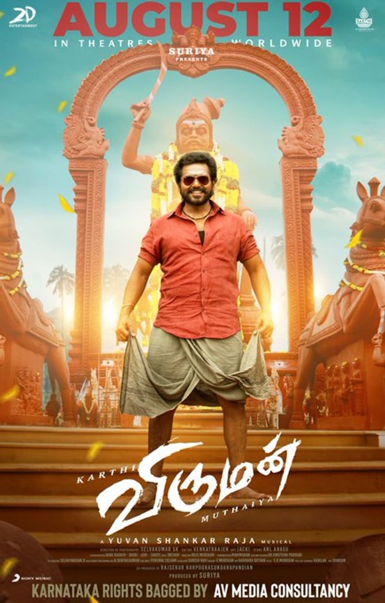 'கடைக்குட்டி சிங்கம்', படத்திற்கு பின்னர், கார்த்தி கிராமத்து வேடத்தில் நடித்துள்ள 'விருமன்' திரைப்படம் இந்த மாதம், ஆகஸ்ட் 12 ஆம் தேதி வெளியாக உள்ளது. கடைசியாக கார்த்தி நடிப்பில், கடந்த ஆண்டு 'சுல்தான்' படம் வெளியான நிலையில், நீண்ட இடைவெளிக்கு பின்னர் கார்த்தியின் படம் வெளியாக உள்ளதால், அவரது ரசிகர்கள் இந்த படத்தை மிகுந்த எதிர்பார்ப்புக்கு மத்தியில் வரவேற்க கார்த்திருக்கின்றனர். இந்த படத்தை மிக பிரமாண்டமாக சூர்யாவின் 2டி நிறுவனம் தயாரித்துள்ளது.