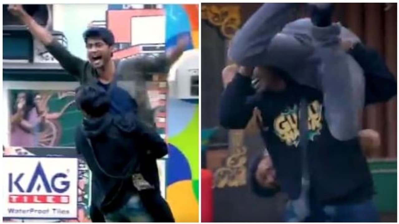 கவின் மற்றும் தர்ஷன் ஆகோயோர், கடந்த வாரம் தான் வெளியே சென்றதால் உள்ளே வரமாட்டார்கள் என அனைவரும் எதிர்பார்த்த நிலையில், திடீர் என, கவின் மற்றும் தர்ஷன் உள்ளே வந்தனர். இவர்கள் இருவரையும் பார்த்ததும் அனைவருமே ஆச்சர்ய அதிர்ச்சியில் உறைந்தனர். கவினை பார்த்ததும் சாண்டி அவரை தூக்கி கொண்டு பிக்பாஸ் வீடு முழுவதும் சுற்றினார். அதே போல், முகேன் தர்ஷனை தூக்கி கொண்டு தன்னுடைய மகிழ்ச்சியை வெளிப்படுத்தினார்.