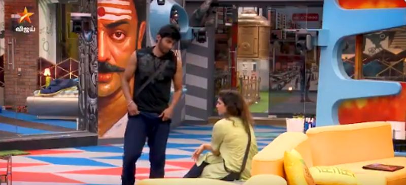 உள்ளே வந்ததும், இங்கு கேம் விளையாட வந்திருக்கிறார்களா, அல்ல எதற்கு வந்திருக்கிறார்கள். ட்ராமா பன்றாங்க என சூடாக கத்துகிறார். எதற்காக கேம் நிறுத்த வேண்டும். எல்லோரும் அடிவாங்கிக்கொண்டு தானே விளையாடி கொண்டு இருக்கிறோம். இதை ஒரு டாக்டிஸ் மாதிரி விளையாடி கொண்டு இருக்கிறார்கள் இது சரி இல்லை என தன்னுடைய மனதில் உள்ளதை தர்ஷனிடம் கூறுகிறார்.