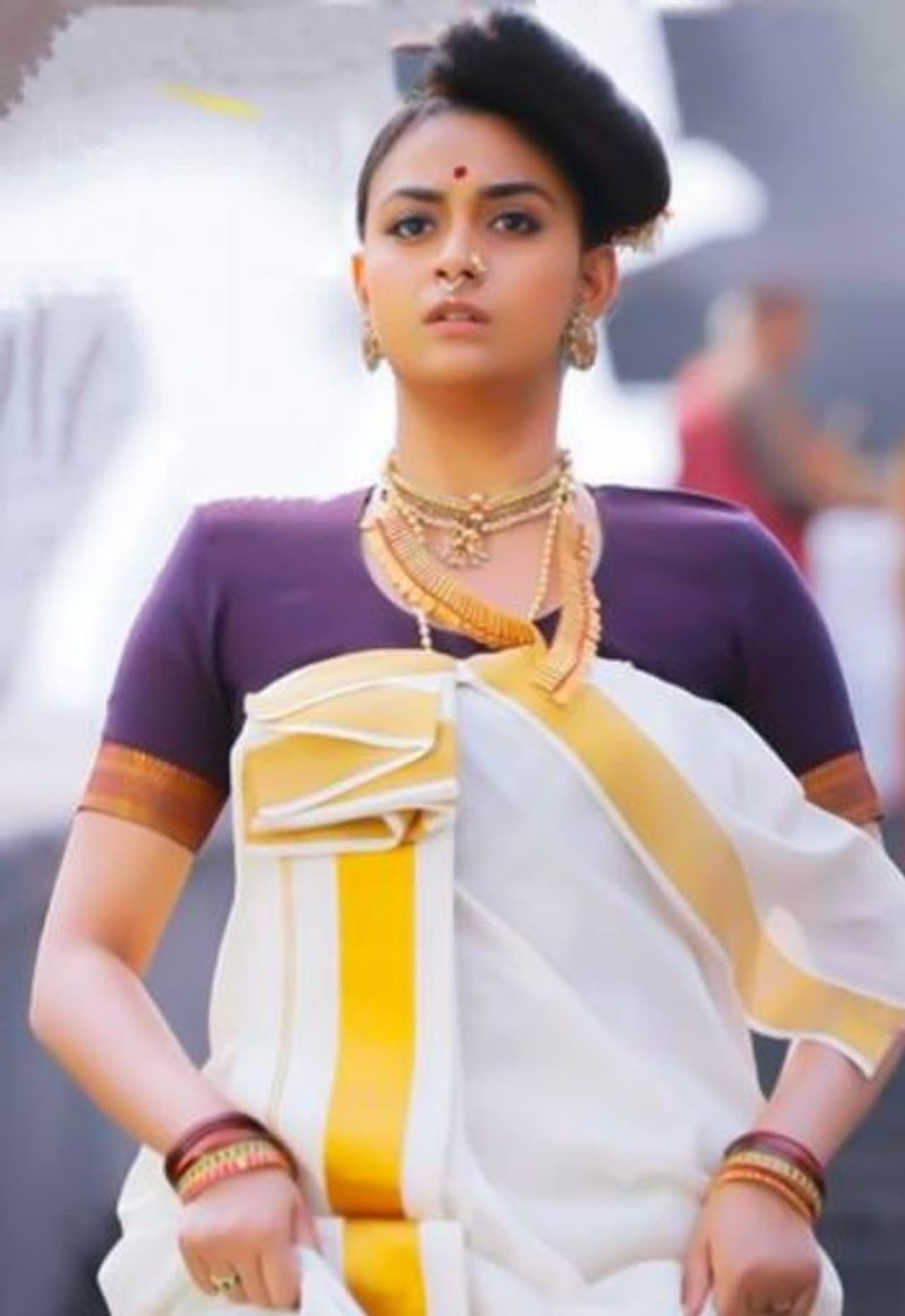இவரின் இந்த புகைப்படம் தற்போது வைரலாகி வருகிறது. கீர்த்தி சுரேஷின் இந்த தோற்றம் அவர், தற்போது நடிகர் மோகன்லாலுடன் நடித்து வரும் 'மரைக்கார்' படத்தில் நடிக்கும் எடுக்கப்பட்டிருக்கலாம் என கூறப்படுகிறது.
