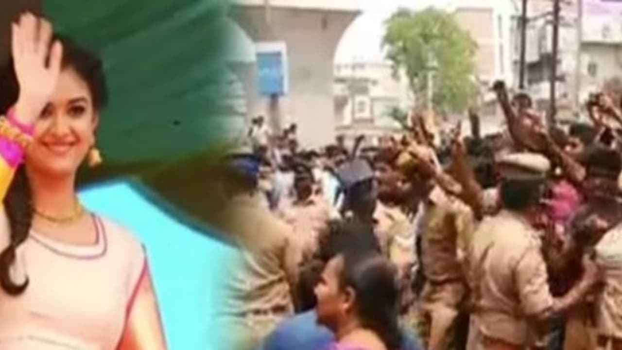 இதனால் போலீசார் அங்கு குவிக்கப்பட்டனர், மேலும் முண்டியடித்து கீர்த்திசுரேஷை பார்க்க வந்த ரசிகர்கள் மீது போலீசார் தடியடி நடத்தி கலைத்தனர், இதனால் அங்கு தள்ளுமுள்ளு ஏற்பட்டு பரபரப்பு ஏற்பட்டது.