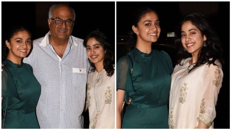 தனது முதல் இந்திப் படத்தின் படப்பிடிப்பே இன்னும் துவங்காத நிலையில் மும்பைக்கு ரெகுலராக விசிட் அடிக்கும் நடிகை கீர்த்தி சுரேஷ் ஸ்ரீதேவியின் மகள் மற்றும் அவரது கணவருடன் பார்ட்டி ஒன்றில் கலந்துகொண்ட புகைப்படங்கள் வலைதளங்களில் வைரலாகி வருகின்றன.