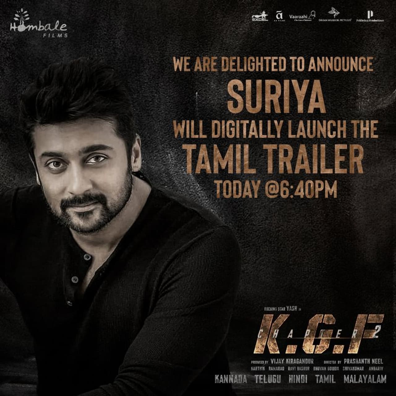 இந்நிலையில், இப்படத்தின் தமிழ் டிரைலர் இன்று மாலை 6.40 மணிக்கு வெளியிடப்பட உள்ளது. அந்த டிரைலரை நடிகர் சூர்யா வெளியிடுவார் என அறிவிக்கப்பட்டு உள்ளது. பீஸ்ட் படத்துக்கு போட்டியாக களமிறங்கும் கே.ஜி.எஃப் 2-விற்கு நடிகர் சூர்யா உதவிக்கரம் நீட்டுவது விஜய் ரசிகர்களிடையே கோபத்தை ஏற்படுத்தி உள்ளது.