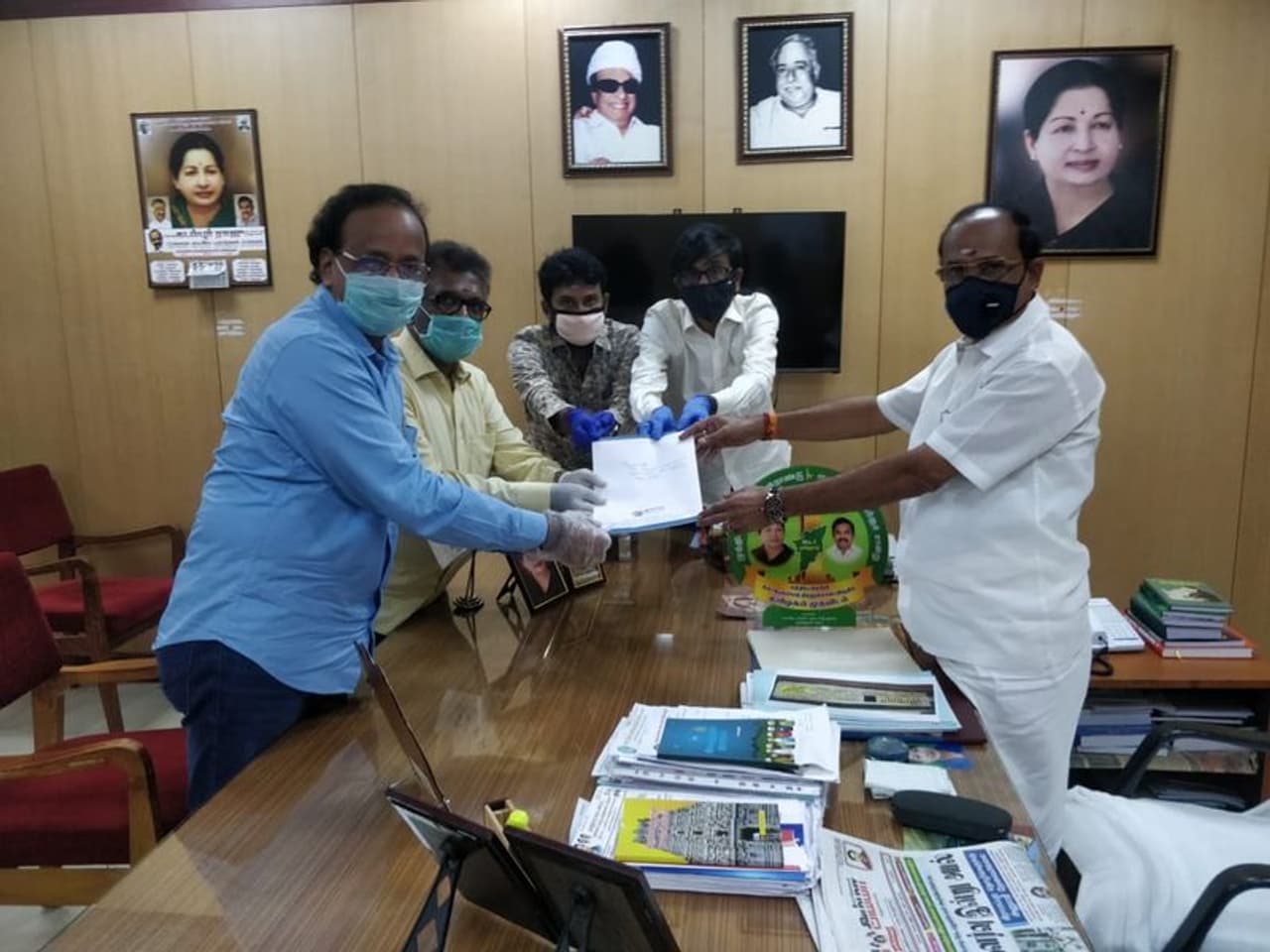 இதற்காக அமைச்சர் கடம்பூர் ராஜூவை நேரில் சந்தித்த தயாரிப்பாளர்கள் T. சிவா, மனோபாலா, G. தனஞ்ஜெயன் மற்றும் M. திருமலை ஆகியோர் மனு ஒன்றை கொடுத்துள்ளனர்.