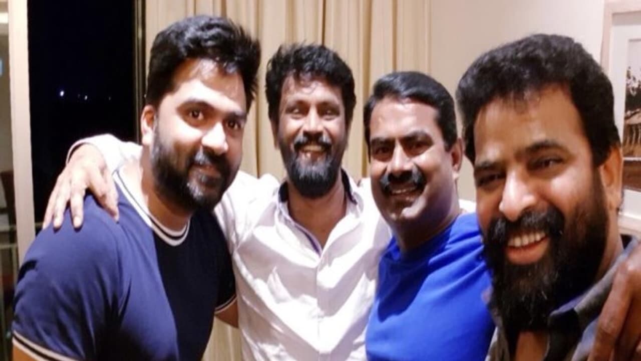 நடிகர் சிம்புவின் அண்மைக்கால லேட்டஸ்ட் படம் ஒன்று ட்விட்டரில் ட்ரெண்ட் ஆகி அசத்தி வருகிறது, பலரும் சிம்புவின் படத்தை சிம்பிளாக இருப்பதாகக் கூறி வைரலாக்கி வருகின்றனர். இந்தப் படத்தில், சிம்பு ஸ்லிம் ஆன உடற்கட்டுடன் புன்னகைத்தபடி இயக்குனர்களுடன் கூட்டணி போட்ட கோலத்தில் காட்சி தருகிறார். இயக்குனர் சேரன், இயக்குனர் சீமான், அமிர் ஆகியோருடன் சிம்பு உள்ள படம்தான் இப்போது ட்ரெண்ட் ஆகிவருகிறது.
