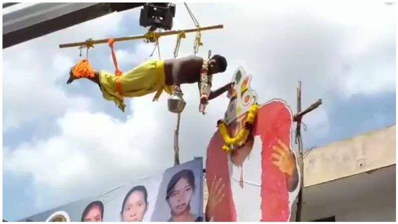 சில மணி நேரங்களுக்கு முன்பு, இரு தினங்களுக்கு முன் வெளியான ராகவா லாரன்ஸின் ‘காஞ்சனா 3’ படத்துக்கு அவரது வெறியர் ஒருவர் முதுகில் அலகு குத்தி ராட்சத கிரேன் ஒன்றின் உதவியுடன் உயிருக்கு ஆபத்தான நிலையில் பாலாபிஷேகம் செய்யும் வீடியோ ஒன்றை ‘மூடர் கூடம்’ இயக்குநர் நவீன் தனது ட்விட்டர் பக்கத்தில் பகிர்ந்திருந்தார்.