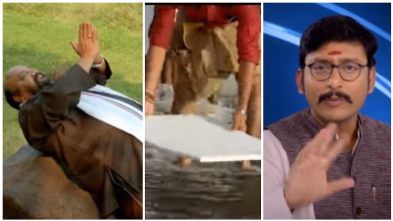 குறிப்பாக, இந்த டிரைலரில் ரூ.3000 கோடி செலவில் சிலை, நதியில் தெர்மாகூல் விடுவது , மனுஷனை விட மாட்டுக்கு அதிக பாதுகாப்பு, கல்லில் படுத்துக்கொண்டு காஜல் அகர்வாலுக்கு யோகா சேலஞ் என மாநில, தேசிய அரசியல் என அனைத்தையும் கவர் செய்து காட்டியுள்ளனர்.