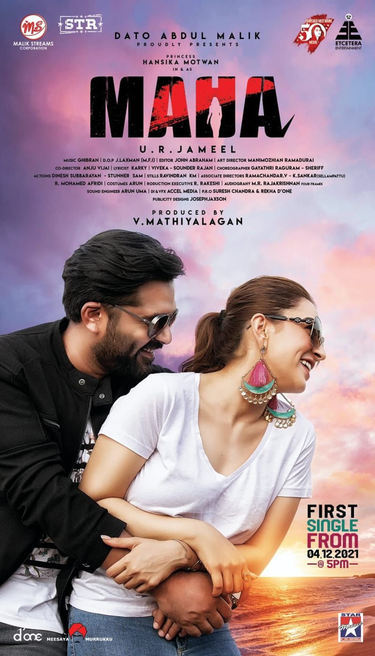 நடிகர் சிம்பு நடித்த 'மாநாடு' திரைப்படம் (Maanaadu movie) நவம்பர் 25 ஆம் தேதி வெளியாகி, வெற்றிநடை போட்டு வரும் நிலையில், தற்போது நீண்ட இடைவெளிக்கு பின் சிம்பு (simbu) முன்னாள் காதலி ஹன்சிகாவுடன் நடித்துள்ள 'மஹா' (Maha movie) படம் குறித்த லேட்டஸ்ட் அப்டேட் ஒன்றை, செம்ம ரொமான்டிக் புகைப்படத்துடன் வெளியிட்டுள்ளனர்.