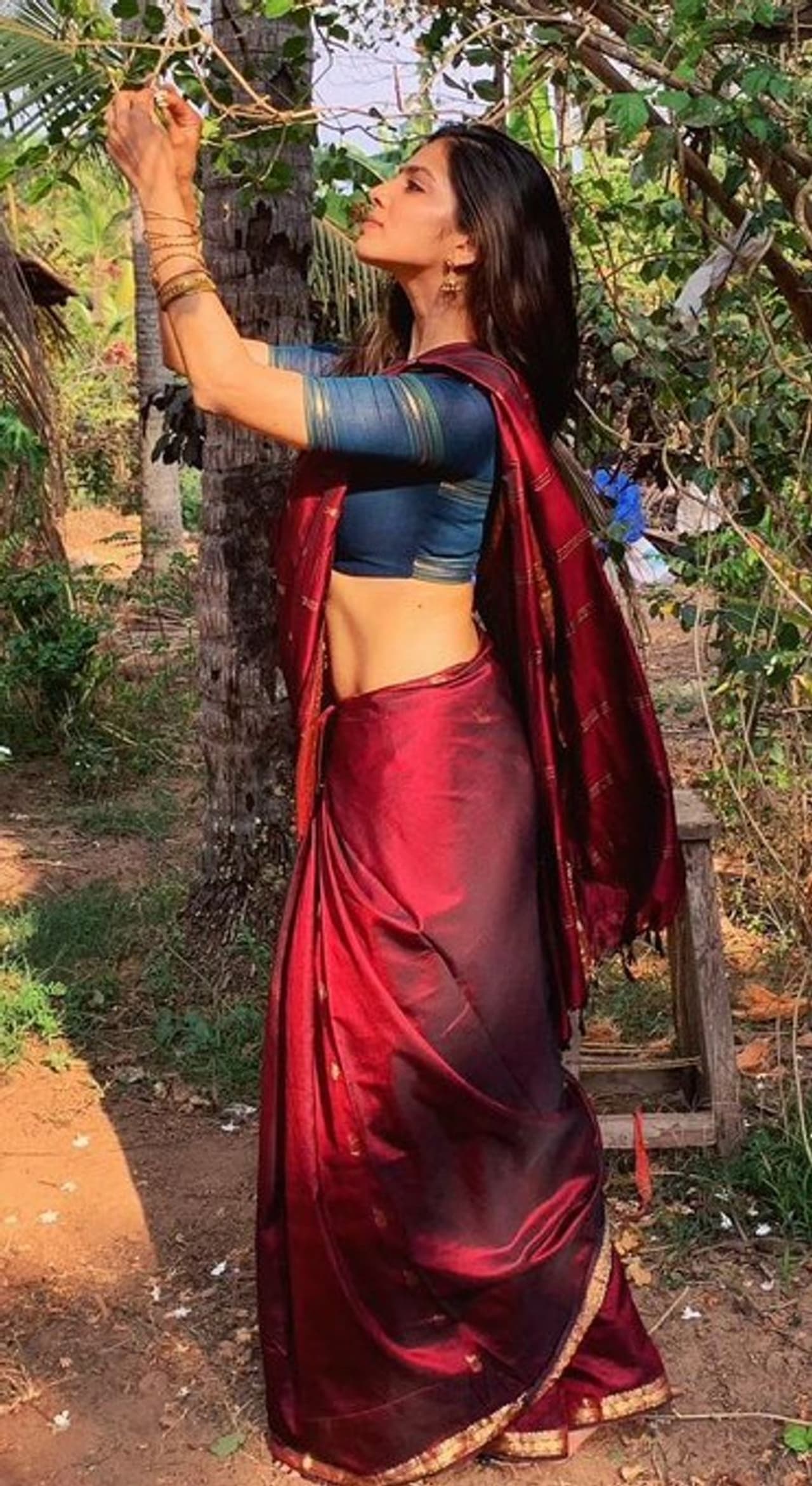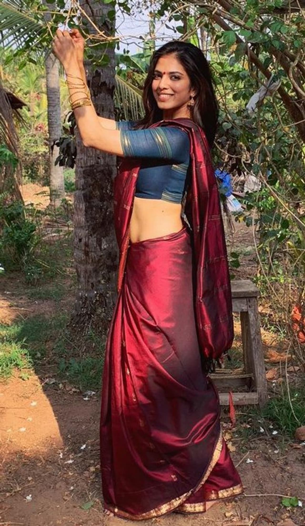 தற்போது மெரூன் கலர் பட்டுப்புடவையில் இடையழகு தெரிய மாளவிகா மோகனன் கொடுத்துள்ள ஹாட் போஸ் தாறுமாறு வைரலாகி வருகிறது.