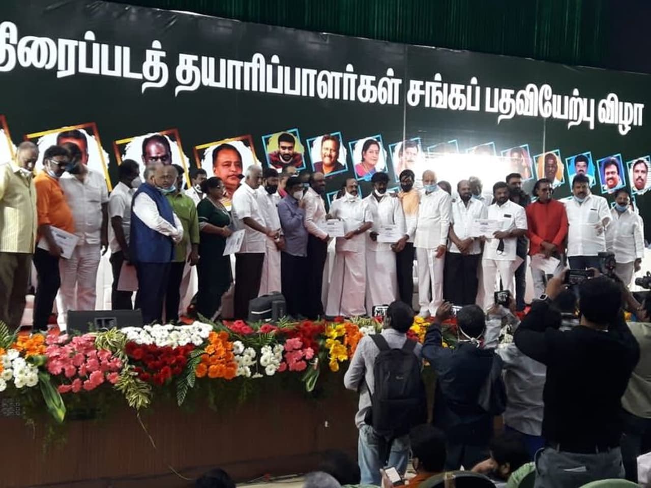 ஆனால் குழப்பத்திற்கு முற்றுப்புள்ளி வைத்த தயாரிப்பாளர்கள் ஓடிடி விற்பனைக்காக பேச்சுவார்த்தை நடப்பது உண்மை தான் என்றாலும், தியேட்டர் ரிலீசுக்குப் பிறகே படத்தை ஓடிடியில் ரிலீஸ் செய்யவோம் என உறுதி அளித்தனர். ஆனால் பொங்கல் விருந்தாக மாஸ்டர் திரைப்படம் திரைக்கு வருமா? என்ற ஐயம் ரசிகர்களிடம் இருந்து வந்தது. இந்நிலையில் நேற்று சென்னை கலைவாணர் அரங்கில் நடைபெற்ற தமிழ்த் திரைப்பட தயாரிப்பாளர்கள் சங்க நிர்வாகிகளின் பதவியேற்பு விழாவில் செய்தி மற்றும் விளம்பரத்துறை அமைச்சர் கடம்பூர் ராஜு பங்கேற்றார்.