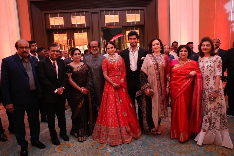 சமீபத்தில் முகேஷ் அம்பானியின் மகள் திருமணம் மும்பையில் நடந்தபோது சூப்பர் ஸ்டார் ரஜினிகாந்த், மனைவி லதாவுடன் சென்று கலந்து கொண்டார். அந்த வகையில் நேற்று நடைபெற்ற ரஜினி மகளின் திருமண வரவேற்பு நிகழ்ச்சியில் முகேஷ் அம்பானி தனது மனைவியுடன் கலந்து கொண்டார்.