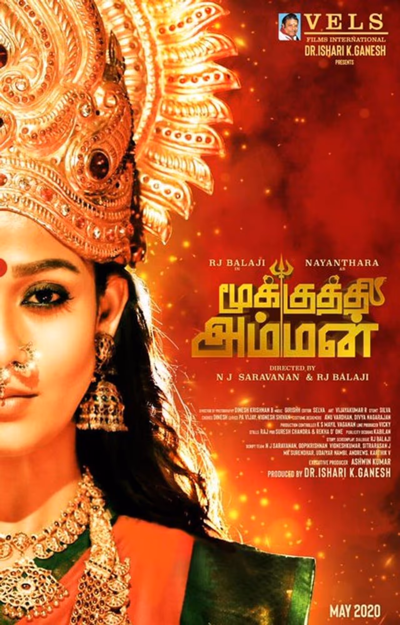 ஆர்.ஜே.பாலாஜி , என்.ஜே.சரவணன் இணைந்து இயக்கியுள்ள படம் மூக்குத்தி அம்மன். இதில் ஆர்.ஜே.பாலாஜி, நயன்தாரா, ஊர்வசி உள்ளிட்டோர் நடித்துள்ளனர். இந்த படத்தில் நயன்தாரா அம்மன் கெட்டப்பில் நடிக்க விரதம் எல்லாம் இருந்தார். எல்.கே.ஜி படத்தைத் தொடர்ந்து இந்தப் படத்தையும் வேல்ஸ் ஃபிலிம் இண்டர்நேஷனல் நிறுவனம் தயாரித்துள்ளது.