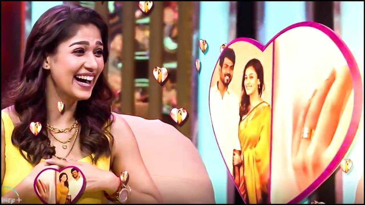 இந்நிலையில் அடுத்தடுத்து படங்களில் கமிட் ஆகி செம்ம பிசியாகி வரும் நயன்தாரா... விஜய் டிவியில் டிடி தொகுத்து வழங்கிய நிகழ்ச்சி ஒன்றில் சிறப்பு விருந்தினராக கலந்து கொண்டுள்ளார். இந்த நிகழ்ச்சியில் லேடி சூப்பர் ஸ்டாருக்கு எந்த அளவுக்கு தீவிர பெண் ரசிகர்கள் உள்ளனர் என்பதை வெளிக்காட்டும் விதத்தில் உள்ளது. மேலும் பல சுவாரஸ்யமான தகவல்களை நயன்தாராவிடம் டிடி கேட்டுள்ளார். அதில் குறிப்பாக நயன்தாராவின் மோதிரம் குறித்து கேட்டதும் இது தன்னுடைய எங்கேஜ்மெண்ட் ரிங் என கூறி நயன் செம்ம ஷாக் கொடுத்துள்ளார்.