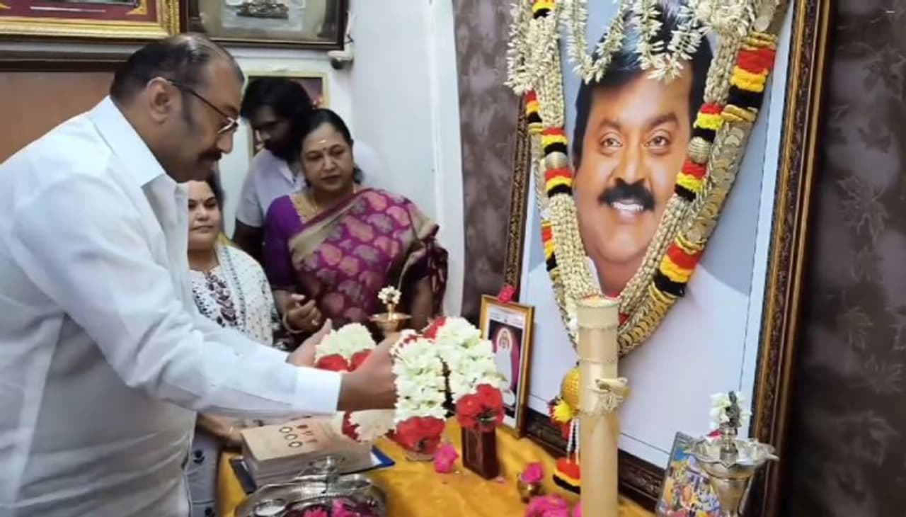 நெப்போலியனின் இரண்டு மகன்களும் தற்போது அவரின் ஐடி தொழிலை கவனித்து வருகிறார்கள். இந்நிலையில் 27 வயதாகும் தன்னுடைய மூத்த மகன் தனுஷுக்கு திருமணம் செய்து வைக்க நெப்போலியன் முடிவு செய்துள்ள நிலையில், கடந்த வாரம் திருமண நிச்சயதார்த்தம் முடிந்துள்ளது. விரைவில் திருமணம் ஜப்பானில் நடைபெற திட்டமிடப்பட்டுள்ளதாக கூறப்படும் நிலையில், சென்னையில் ரிசப்ஷன் நடைபெற வாய்ப்புள்ளதாக கூறப்படுகிறது. இதற்கான பணிகளில் நெப்போலியன் மற்றும் அவரின் மனைவி தீவிரம் காட்டி வருகிறார்கள். சென்னையில் உள்ள தங்களின் வீட்டில் தங்கி, சமீபத்தில் திமுக தலைவர் ஸ்டாலினுக்கு திருமண அழைப்பு வைத்த இவர் நேற்று கேப்டன் விஜயகாந்துக்கு மலர் தூவி மரியாதை செய்த பின்னர் பிரேமலதா விஜயகாந்திடம் திருமண அழைப்பிதழை கொடுத்தார்.