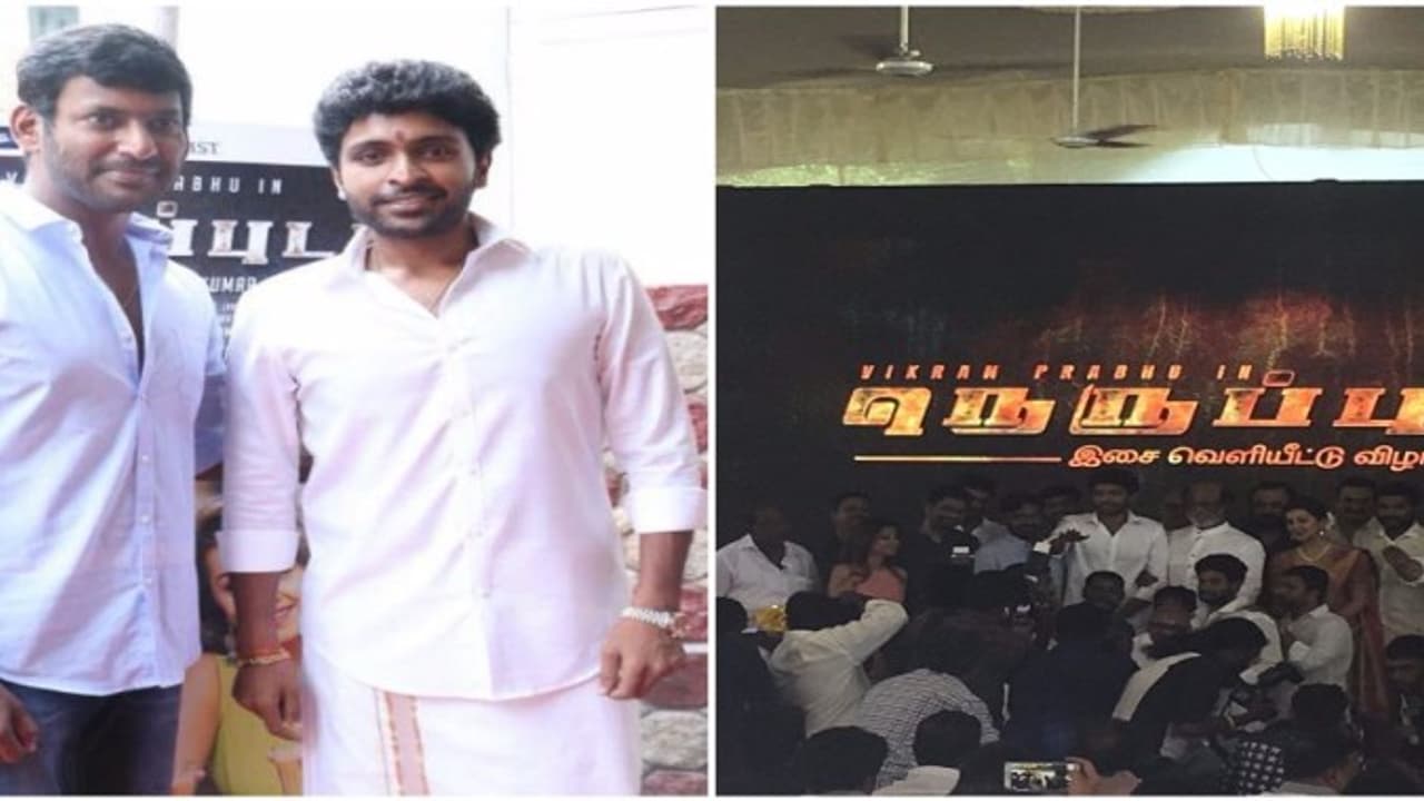 நடிகர் பிரபுவின் மகன் விக்ரம் பிரபு முதல் முறையாக தயாரித்து நடித்துக்கொண்டிருக்கும் 'நெருப்புடா' படத்தின் பாடல் வெளியீட்டு விழா இன்று நடந்தது.