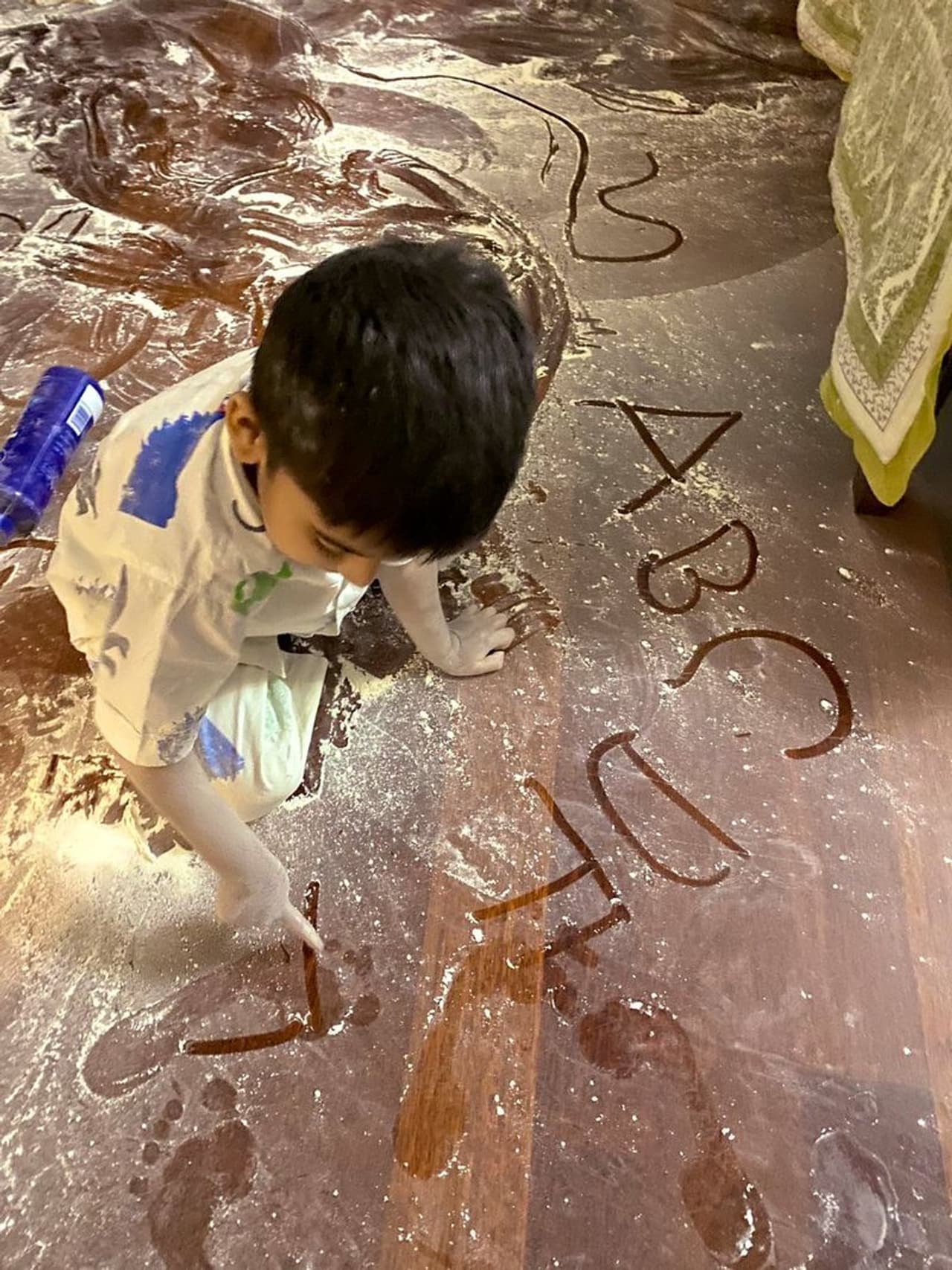 அதில் வீடு முழுவதும் பவுடரை கொட்டி, ABCD எழுதி விளையாடுகிறார் சுட்டி பையன் வேத் கிருஷ்ணா. அதை பார்க்கும் நெட்டிசன்கள் யார் ரத்தம்?, தலைவர் ரத்தம் இல்ல, அப்படி தான் இருக்கும் என கமெண்ட் செய்துள்ளனர்.