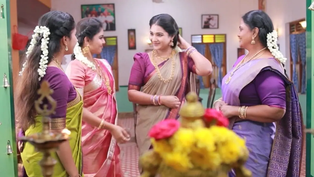 அப்போது தான் முதலில் சம்பந்திக்கு போன் போடுங்க என்று சொல்லவும், அதன் பிறகு கடைக்கு போன் போட்டு முதலில் வீட்டிற்கு வாருங்கள் என்றார். தொடர்ந்து சரவணனை வர சொல்ல எல்லொருமே வீட்டிற்கு வந்துவிட்டார்கள். அப்போதுதான் தங்கமயில் கர்ப்பமாக இருப்பதை தெரியப்படுத்தினார்கள்.