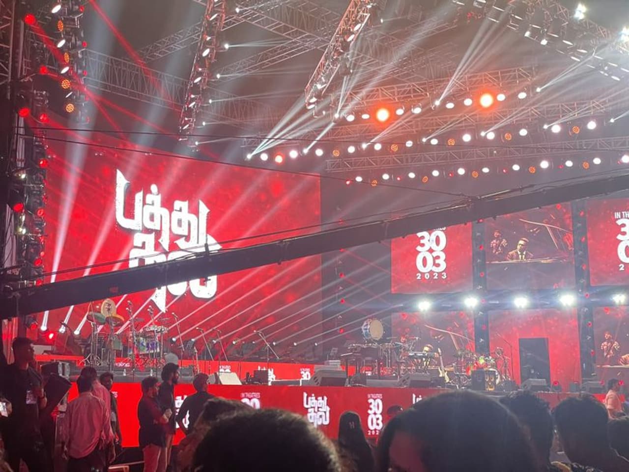 தமிழ் சினிமாவில் முன்னணி நடிகராக இருக்கும் சிம்பு தற்போது நடித்து முடித்துள்ள திரைப்படம் 'பத்து தல'. இந்த படத்தின் இசைவெளியீட்டு விழா சற்று முன் துவங்கிய நிலையில், இது குறித்த வீடியோக்கள் சில சமூக வலைதளத்தில் வெளியாகி வைரலாக பார்க்கப்பட்டு வருகிறது.