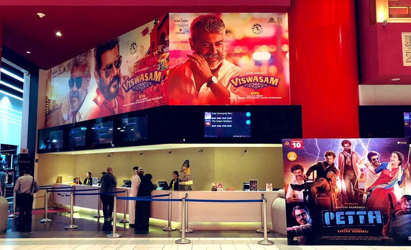 இருந்தாலும் வெளிநாட்டில் இருக்கும் ஒரு திரையரங்கில் பேட்ட படத்தின் பேனர் கீழே வைக்கப்பட்டுள்ளது. விஸ்வாசம் படத்தின் பேனர் மிகப்பெரியதாக மேலே வைக்கப்பட்டுள்ளது. இந்த போட்டோவை பார்த்த தல ரசிகர்கள் அதிகாரமும் அடக்குமுறையும் வெளிநாட்டில் செல்லாது இது தல பொங்கல் என பயங்கர குஷியாகியுள்ளனர்.
