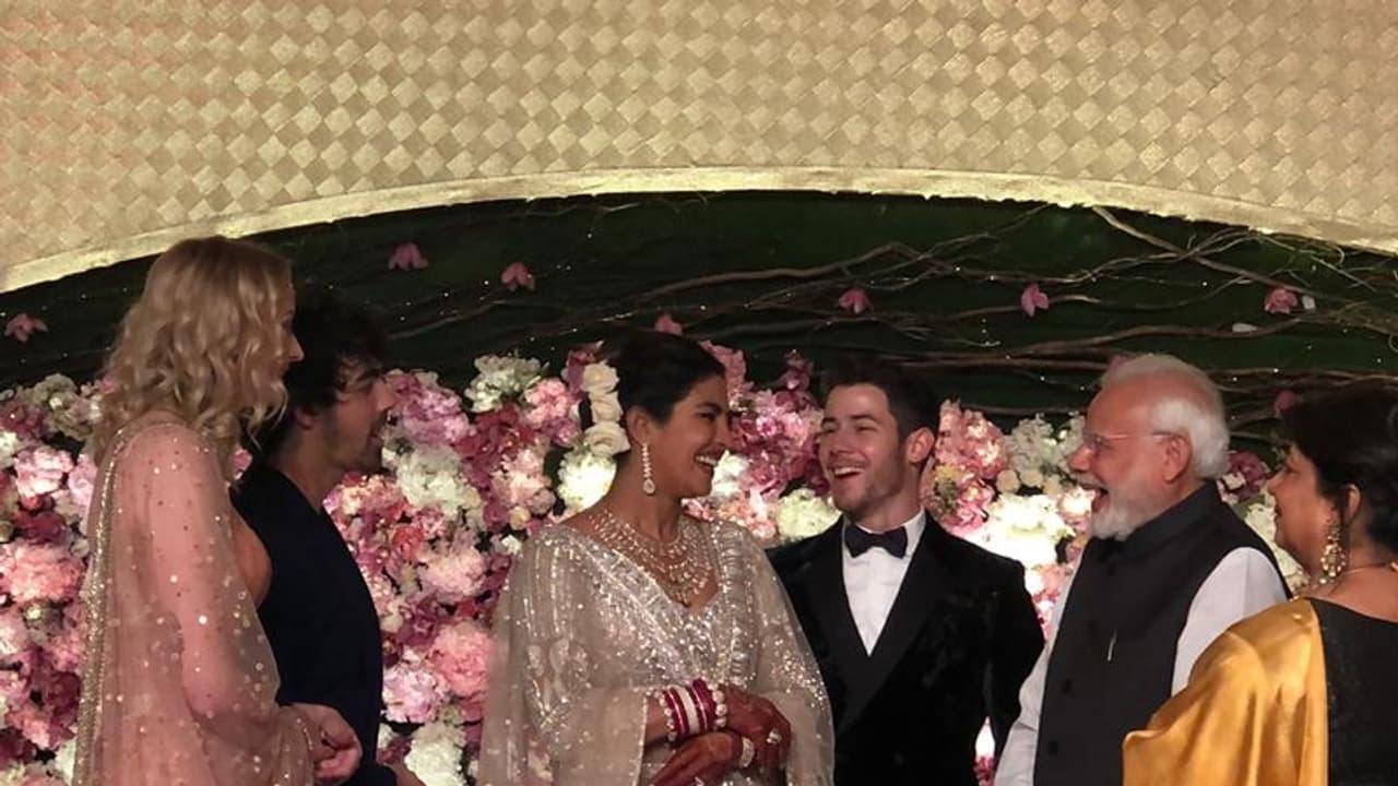 இந்நிலையில், நேற்று டில்லியில் உள்ள தாஜ் ஹோட்டலில் இவர்களது திருமண வரவேற்பு நிகழ்ச்சி பிரம்மாண்டமாக நடைபெற்றது. பாலிவுட்டின் முன்னணி நடிகர்கள் மற்றும் ஹாலிவு பிரபலங்கள் என பலர் கலந்து கொண்ட இந்த திருமண வரவேற்பு நிகழ்ச்சியில், பிரதமர் நரேந்திர மோடி கலந்து கொண்டு மணமக்களை வாழ்த்தினார். பின்னர் பிரியங்காவுடனும் நிக் ஜோன்ஸுடன் பிரியமாக சிரித்தபடி உரையாடினார்.