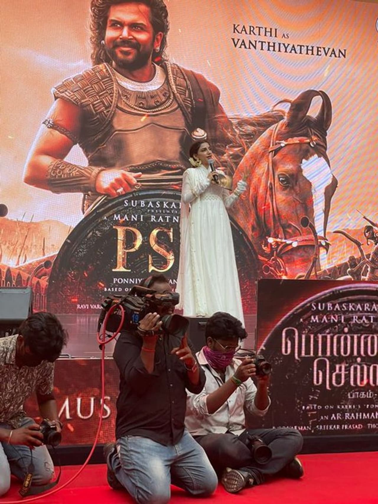 இயக்குனர் மணிரத்தினம் இயக்கத்தில், லைகா மற்றும் மெட்ராஸ் டாக்கீஸ் நிறுவனம் இணைந்து தயாரித்துள்ள, 'பொன்னியின் செல்வன்' திரைப்படம் மிக பிரமாண்டமாக எடுக்கப்பட்டுள்ள நிலையில், இந்த படத்தின் முதல் பாகம், செப்டம்பர் மாதம் வெளியாக உள்ளது. இப்படத்தின் போஸ்ட் புரொடக்ஷன் பணிகள் ஒரு புறம் தீவிரமாக நடந்து வரும் நிலையில், மற்றொரு புறம் படத்தின் புரோமோஷன் பணிகளும் விறுவிறுப்பாக நடந்து வருகிறது.