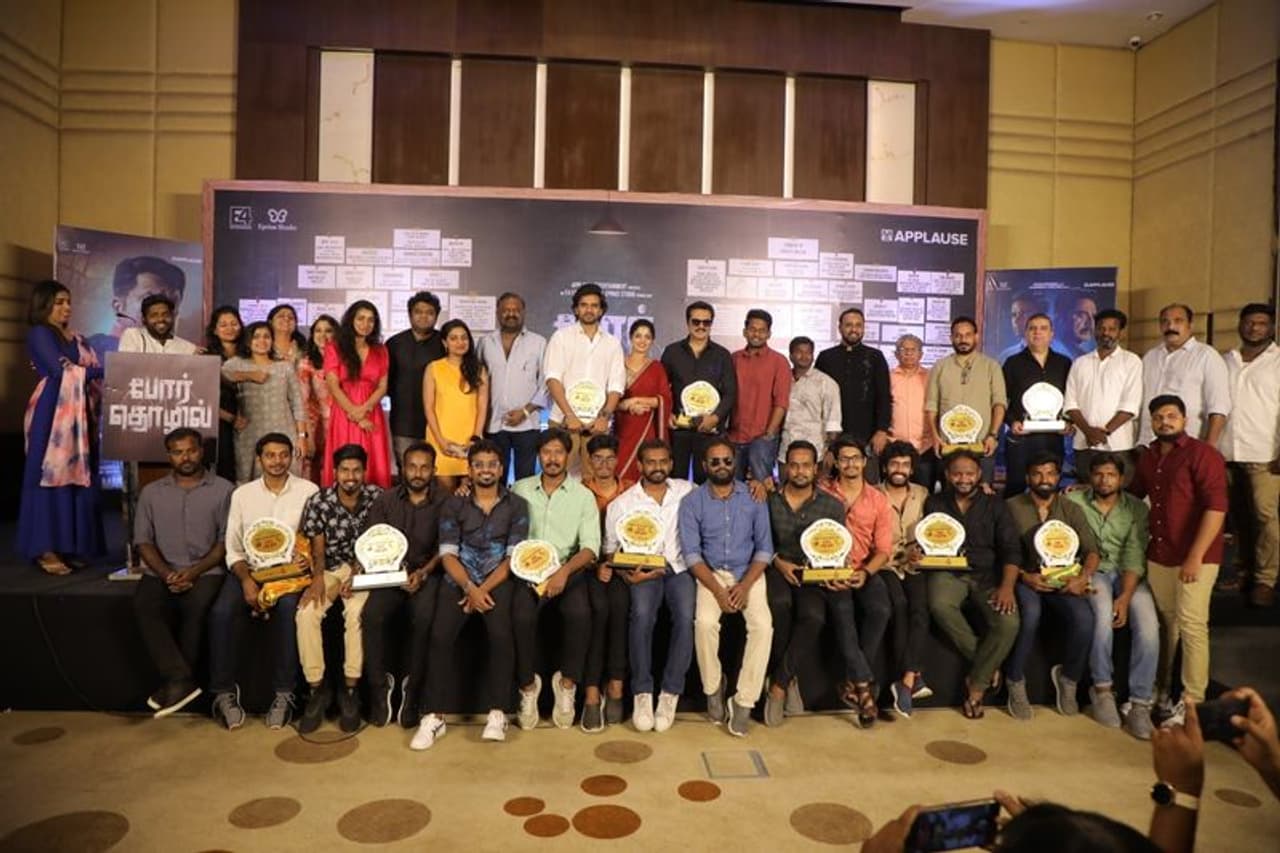 ஒரு மாதத்தை கடந்து, திரையரங்குகளில் வெற்றிகரமாக ஓடிக்கொண்டிருக்கும், போர் தொழில் படத்தின் வெற்றி விழாவில், சரத்குமார் இயக்குனர் விக்னேஷ் ராஜாவை புகழ்ந்து தள்ளியுள்ளார்.