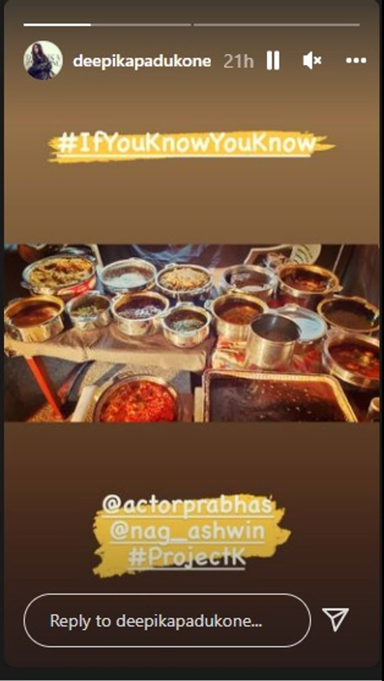 சூட்டிங் ஸ்பாட்டில் தீபிகா படுகோனை உபசரித்த பிரபாஸ் அவருக்கு ஆடம்பர தெலுங்கு உணவு வகைகளை பரிமாறி உள்ளார். இது தொடர்பான புகைப்படத்தை சமூக வலைதளத்தில் தீபிகா படுகோன் பகிர்ந்துள்ளார்.