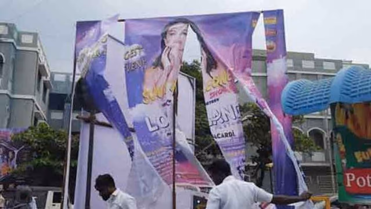 புதுச்சேரியில் சன்னி லியோன் பங்கேற்று நடனமாடும் புத்தாண்டு கொண்டாட்ட நிகழ்ச்சிக்கு எதிர்ப்பு தெரிவித்து போஸ்டர்களை கிழித்து போராட்டம் நடத்திய சம்பவம் பெரும் பரபரப்பை ஏற்படுத்தியுள்ளது.