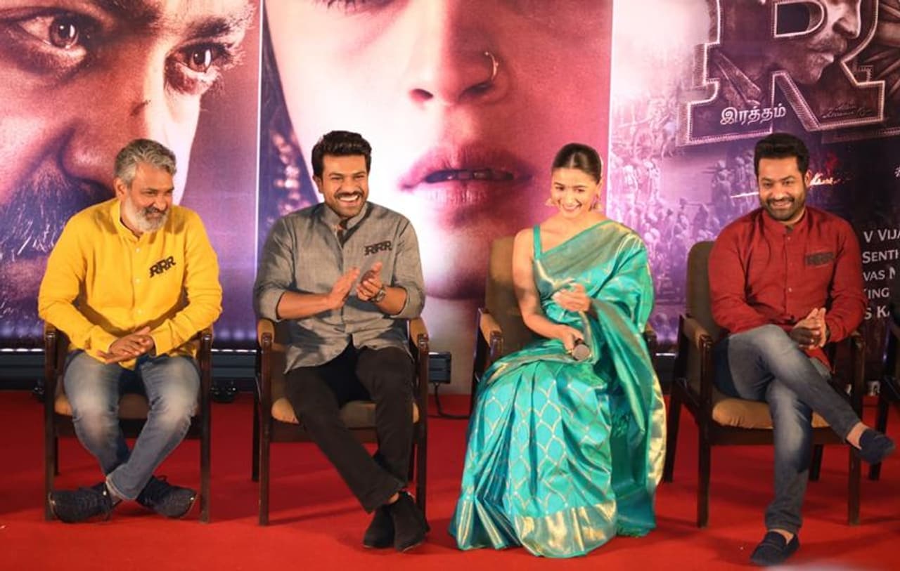 இந்நிலையில், இப்படத்தின் பத்திரிகையாளர் சந்திப்பு நிகழ்வு நேற்று சென்னையில் நடந்தது. இதில் இயக்குனர் ராஜமௌலி, நடிகர்கள் ராம்சரண், ஜூனியர் என்.டி.ஆர், நடிகை ஆலியா பட் ஆகியோர் கலந்துகொண்டனர். அப்போது இயக்குனர் ராஜமௌலி பேசியதாவது: “நாம் எவ்வளவு பெரிய ஆளானாலும் படிச்ச ஸ்கூலுக்கு வந்தா பயமா இருக்கும். அது மாதிரி தான் சென்னை எனக்கு, சினிமா கற்று தந்தது சென்னை தான். அந்த பயம் எனக்கு இருக்கிறது. ஒரு பெரிய படம் என்பதை எடுக்கும்போதே யாரும் நிர்ணயிக்க முடியாது.