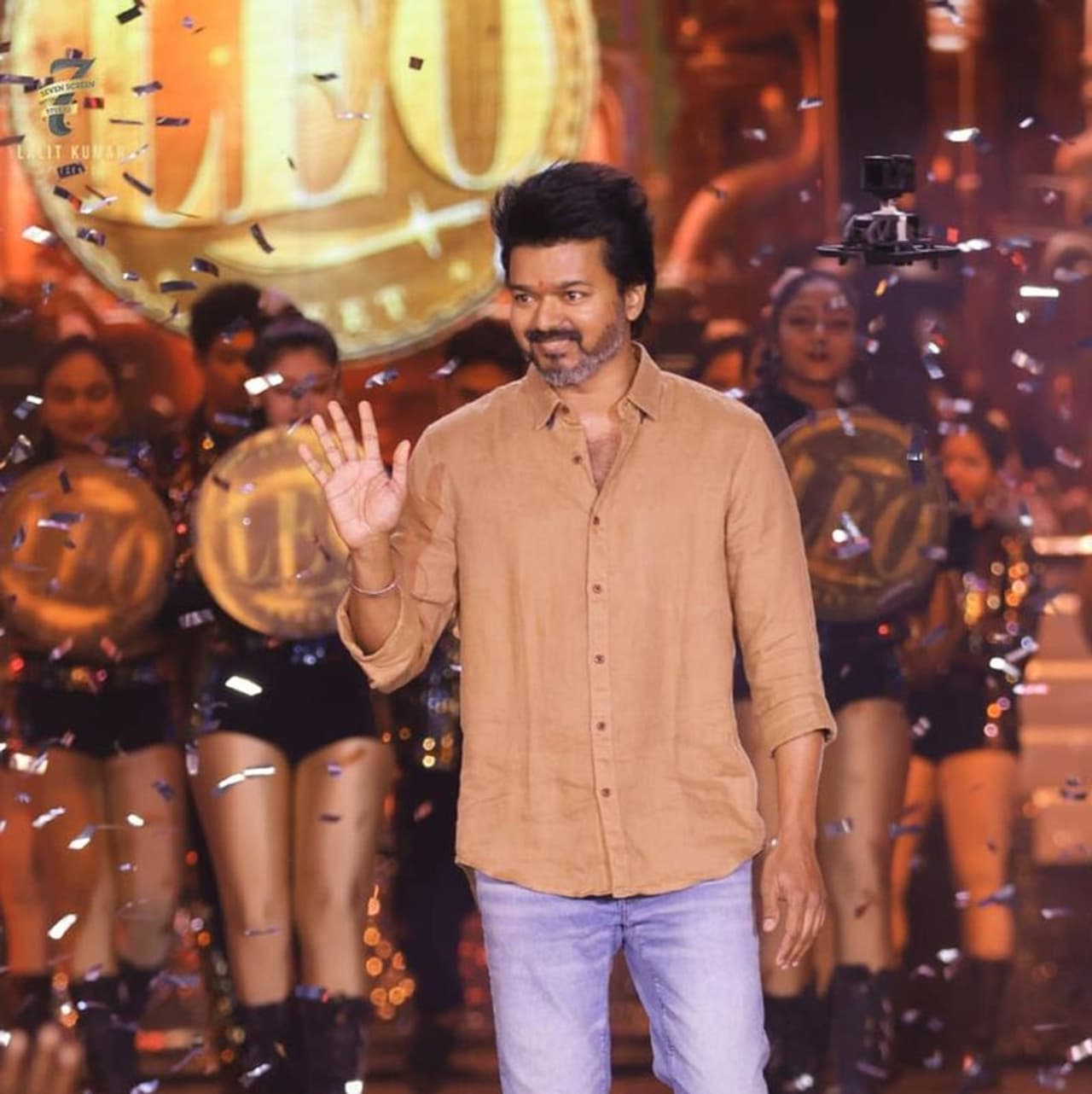 தளபதி விஜய் நடிப்பில், அக்டோபர் 19-ஆம் தேதி வெளியான, லியோ படத்தின் வெற்றிவிழா நேற்று மிகவும் பிரமாண்டமாக சென்னை நேரு ஸ்டேடியத்தில் நடந்தது. இதில் சுமார் 5000-யிரத்திற்கும் மேற்பட்ட ரசிகர்கள் கலந்து கொண்டனர். அதே போல் லியோ படத்தில் பணியாற்றிய அணைத்து பிரபலங்களும் கலந்து கொண்டு, இப்படத்தில் நடித்த அனுபவத்தை மேடையில் பகிர்ந்துகொண்டனர்.