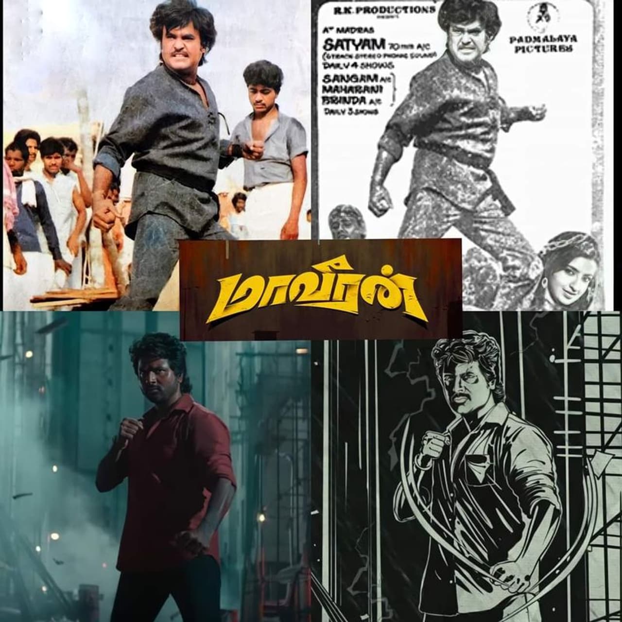 அவற்றின் விவரங்களை பார்க்கலாம். “தனுஷ் நடித்த படிக்காதவன், பொல்லாதவன், தங்கமகன், சிவகார்த்திகேயனின் வேலைக்காரன், மாவீரன், கிருஷ்ணா நடித்த வீரா, கழுகு, சிபிராஜ் நடிப்பில் வெளியான போக்கிரி ராஜா, ரங்கா, சத்யராஜின் குரு சிஷ்யன், உதயநிதி நடித்த மனிதன், விஷாலின் நான் சிகப்பு மனிதன், கார்த்தி நடித்த நான் மகான் அல்ல, விஜய் ஆண்டனியின் காளி, பிரித்விராஜ் நடித்த நினைத்தாலே இனிக்கும், நயன்தாராவின் நெற்றிக்கண், ஜிவி பிரகாஷின் குப்பத்து ராஜா, ஆயிரம் ஜென்மங்கள், திரிஷாவின் கர்ஜனை மற்றும் வெற்றிமாறனின் விடுதலை ஆகிய படங்கள் ரஜினி பட தலைப்பை ரிப்பீட் செய்து வந்துள்ளன.