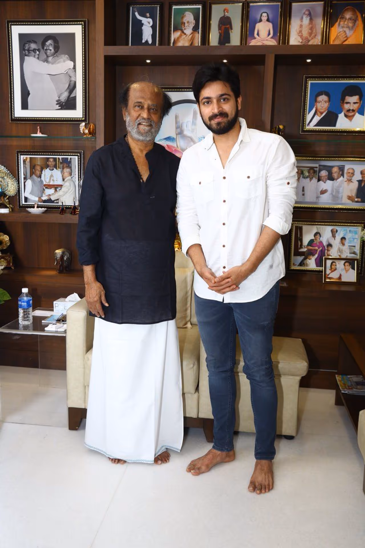 சூப்பர் ஸ்டாருடனான சந்திப்பின்போது எடுக்கப்பட்ட புகைப்படங்கள், தற்போது சமூகவலைதளங்களில் வெளியாகி ரசிகர்களின் கவனத்தை ஈர்த்துள்ளது. ரஜினிகாந்திடமிருந்து கிடைத்துள்ள பாராட்டுக்கள் மற்றும் வாழ்த்துக்களால் 'தனுசு ராசி நேயர்களே' படக்குழு மிகுந்த உற்சாகத்தில் உள்ளது.