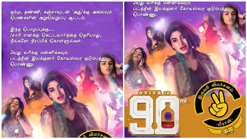 உடன் வந்த சேரன்,அருண் விஜய், சாருஹாசன் படங்கள் எல்லாம் ஈ ஓட்டிக்கொண்டிருக்க, ஓவியாவின் 90 எம்.எல்’ படம் தியேட்டர்களில் ஹவுஸ்ஃபுல்லாக ஓடிக்கொண்டிருக்கிறது. ரிலீஸாகும் அன்றே பத்திரிகையாளர்களுக்கு படத்தைப்போட்டுக் காட்டினால் நெகடிவ்வாக எழுதி வசூலைக் கெடுத்துவிடுவார்கள் என்ற எண்ணத்தில் நேற்று அறிவித்திருந்த பத்திரிகையாளர் காட்சியை ரத்து செய்தார் நடிகை ஓவியா. ஸோ... நான்கு முகநூல் பிரபலங்களின் கருத்து இதோ...