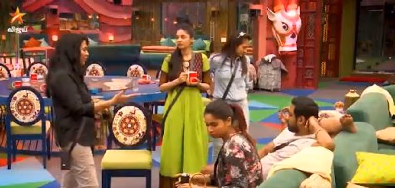 இந்நிலையில் இன்றைய முதல் புரோமோவிலேயே ரேகா மற்றும் சனம் ஆகியோர் இடையே நடக்கும் சண்டை தான் ஹை லைட்டாக காட்ட படுகிறது. தான் ஏற்று கொண்ட வேலையை நீங்கள் ஏன் செய்தீர்கள் என்பது தான் சனத்தின் பிரச்சனை. இவர்கள் பஞ்சாயத்தை தீர்த்து வைக்க இடையில் ரம்யாவும் தலையிடுகிறார்.