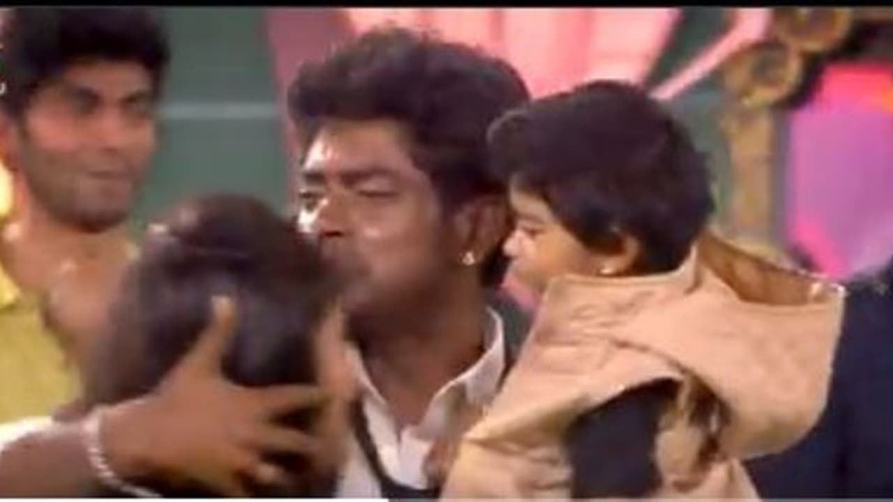 முதலில் சாண்டியின் மகள் லாலா உள்ளே வருகிறார். அவரை பார்த்ததும், சாண்டி கட்டி பிடித்து அழுகிறார். இந்த காட்சி பார்க்கும் ரசிகர்கள் மனதையே நெகிழ வைக்கும் விதமாக உள்ளது. அதை தொடர்ந்து சாண்டியின் மனைவி சில்வியா உள்ளே வருகிறார். அவரை அன்பு முத்தத்தோடு வரவேற்கிறார் சாண்டி.
