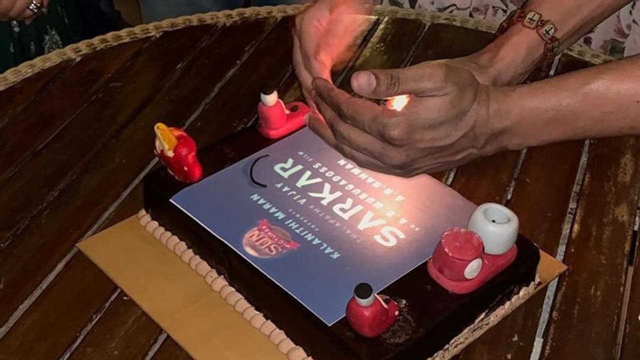 பார்ட்டி துவங்கும் முன்பாக ஒரு கேக் வெட்டப்படுகிறது. வில்லங்கமே அந்த கேக்கில்தான் இருக்கிறது. அந்த கேக்கைச் சுற்றி நான்கு பக்கத்திலும் இரண்டு மிக்ஸி மற்றும் இரண்டு கிரண்டர்கள் நக்கலாக வைக்கப்பட்டிருந்தன. அந்த கேக்கை வெட்டுவதற்கு முன் பயங்கர பில்டப்கள். வெறும் கை மட்டும் காட்டி ஒரு ஸ்டில். அந்தக் கை யாரோடது? என்று கேள்வி. உடனே ...ஹேய்ய்ய்ய்ய்.... தளபதி விஜயோடது’... என்று ஆரவாரமான பதில்கள். இப்படி நடந்து முடிந்தது அந்தப்பார்ட்டி.