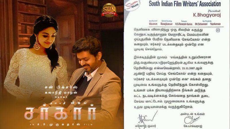 சர்கார் கதைத்திருட்டு தொடர்பாக வெளியாகியுள்ள தென்னிந்திய திரைப்பட எழுத்தாளர் சங்கத்தின் லெட்டர் பேடு மிகப்பெரும் சர்ச்சையை உண்டாக்கியுள்ளது.