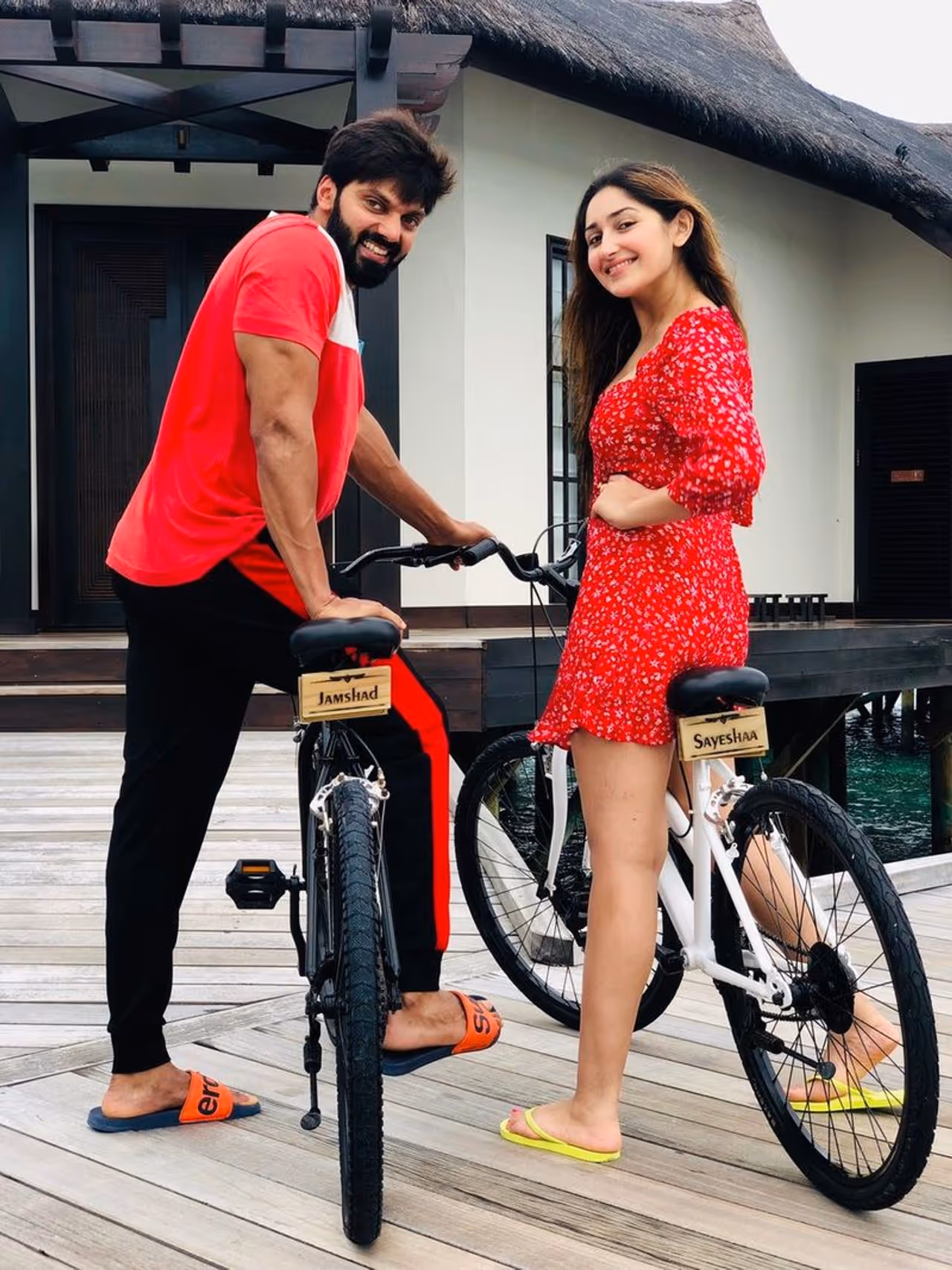 ஜெயம் ரவியின் வனமகன் படத்தின் மூலம் தமிழ் திரையுலகுக்கு அறிமுகமானவர் நடிகை சாயிஷா. தனது அபார நடன திறமையால் லேடி பிரபுதேவா என ரசிகர்களால் கொண்டாடப்பட்ட அவர், விஜய் சேதுபதி, கார்த்தி என அடுத்தடுத்து முன்னணி ஹீரோக்களுடன் ஜோடி சேர்ந்து அசரடித்தார்.