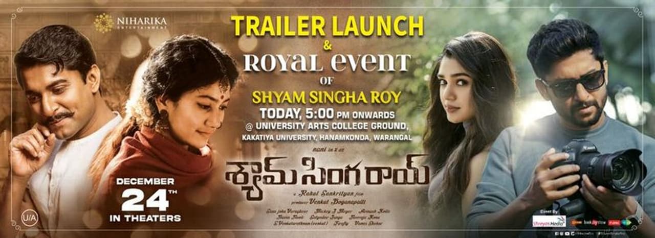 Shyam Singha Roy trailer : இன்று மாலை 5 மணிக்கு நானி நடித்துள்ள Shyam Singha Roy படத்திலிருந்து ட்ரெய்லர் வெளியாகவுள்ளது.