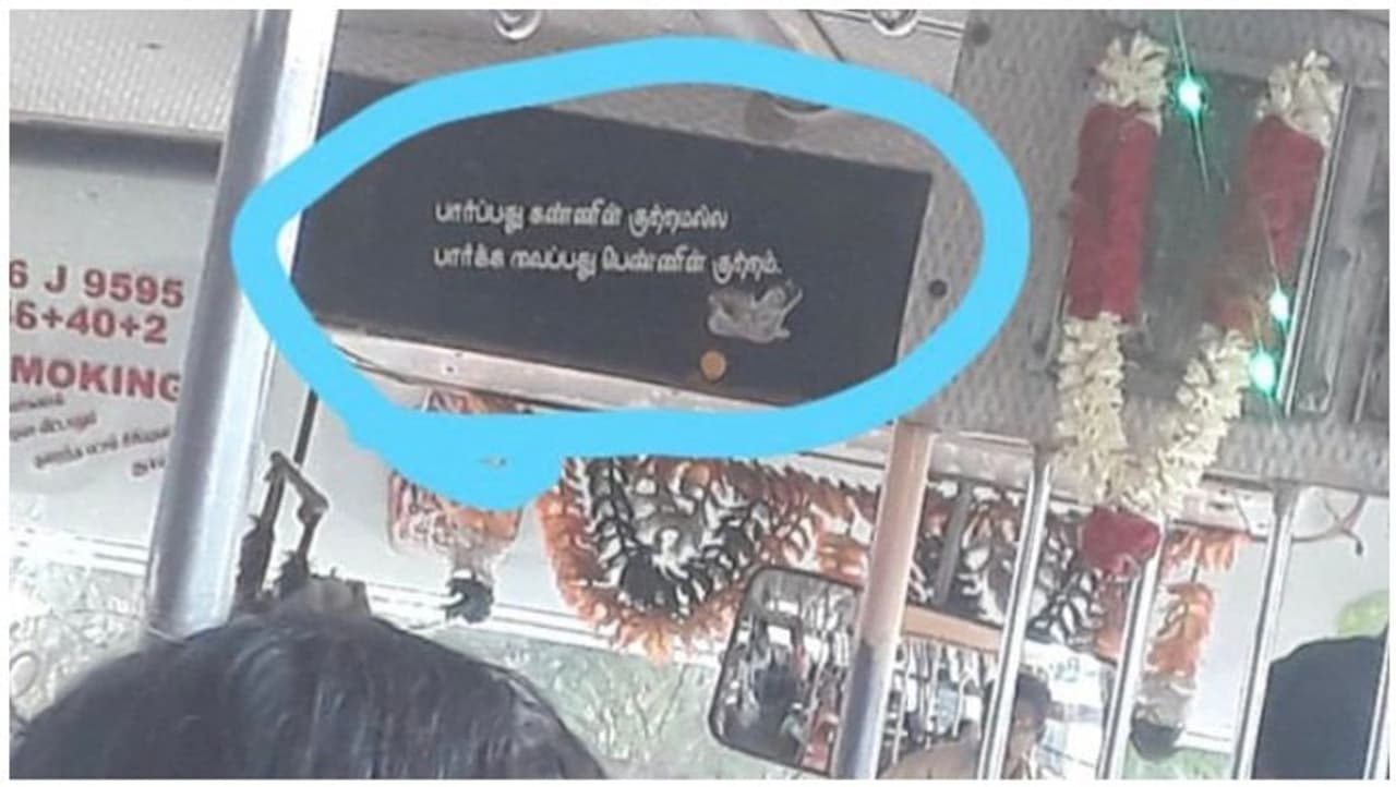 இந்நிலையில் நீண்ட இடைவெளிக்குப் பின் பெண்களின் ஆடை குறித்து நக்கலாகப் பதிவு செய்யப்பட்ட பஸ் வாசகம் ஒன்றை தனது ட்விட்டர் பக்கத்தில் பதிவிட்டு கடுமையான கண்டனம் தெரிவித்துள்ளார். கோயமுத்தூரில் ஓடும் தனியார் பஸ் ஒன்றில் வைக்கப்பட்டுள்ள வாசகத்தில்,...பார்ப்பது கண்ணின் குற்றமல்ல...பார்க்க வைப்பது பெண்ணின் குற்றம்’என்ற போர்டை படம் பிடித்து தனது ட்விட்டர் பக்கத்தில் வெளியிட்டுள்ள அவர்,...பெண்களை அவமானப்படுத்துவதற்கு என்னவெல்லாம் செய்கிறார்கள் பாருங்க என்று குறிப்பிட்டுள்ளார்.