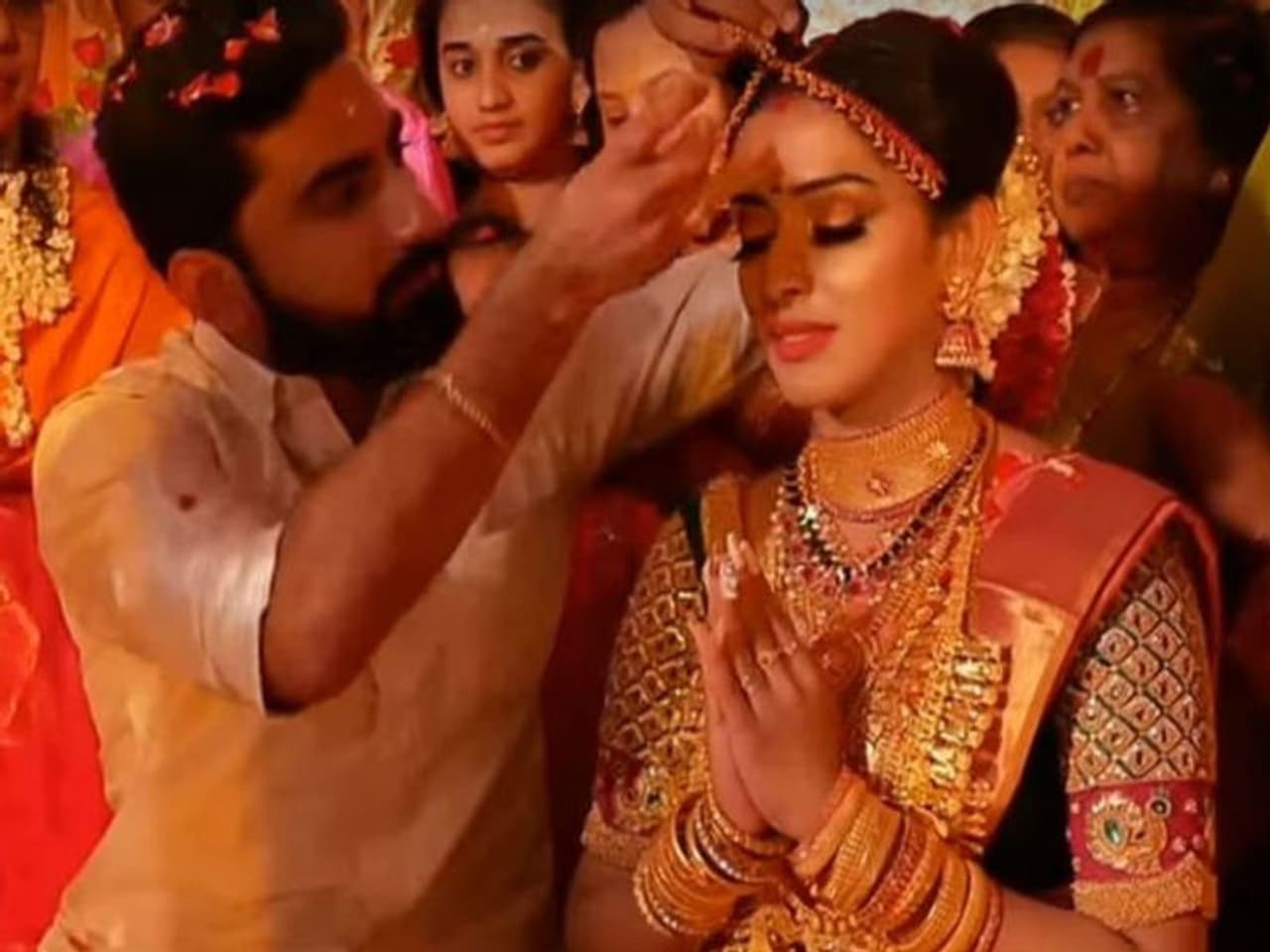 நடிகை மகாலட்சுமி நீண்ட காலமாக நிர்மல் கிருஷ்ணா என்பவரை காதலித்து வந்துள்ளார். இவர்களது திருமணத்திற்கு பெற்றோர் சம்மதம் தெரிவித்தனர். இதையடுத்து கடந்த பிப்ரவரி மாதம் இவர்களது நிச்சயதார்த்தம் கோலாகலமாக நடைபெற்றது. இந்நிலையில் கடந்த ஞாயிற்றுக்கிழமை, கோலாகலமாக திருமணம் நடைபெற்றுள்ளது. திருவனந்தபுரத்தில் நடைபெற்ற திருமணத்தில் ஏராளமான திரைப்பிரபலங்கள், சின்னத்திரை நடிகர், நடிகைகள் பங்கேற்று, இளம் ஜோடியை வாழ்த்தினர்.