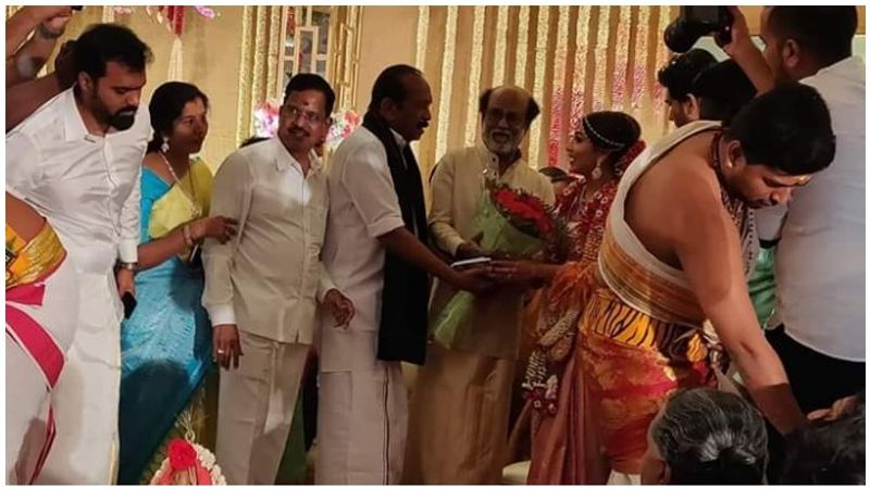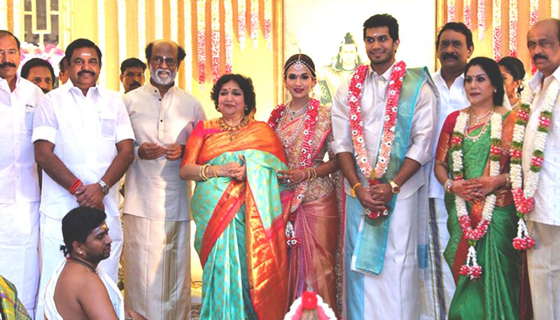 சௌந்தர்யா - விசாகன் ஆகியோரின் திருமண வரவேற்பு நிகழ்ச்சியில் பிரபலங்கள் மற்றும் பல அரசியல் தலைவர்கள் கலந்து கொண்டு வாழ்த்து தெரிவித்து வருகின்றனர்.