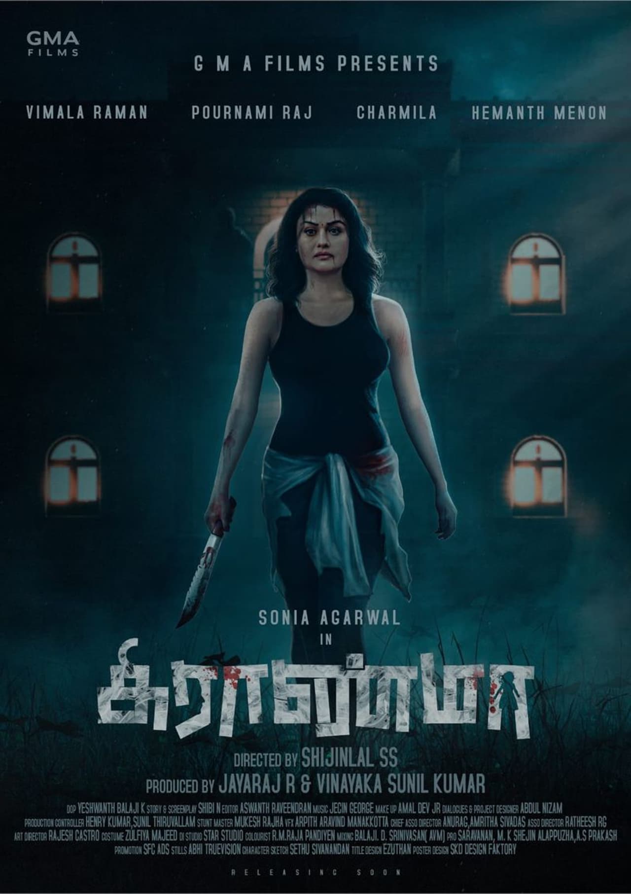 நடிகை சோனியா அகர்வால் (soniya Agarwal) நடித்துள்ள ஹாரர் திரைப்படமான, 'கிராண்மா' (Grandma Movie) படத்தின் ஃபர்ஸ்ட் லுக் தற்போது வெளியாகியுள்ளது. இதில் மிகவும் இளமையாக தெரியும் சோனியா அகர்வால், கையில் கத்தியோடு... ரத்தம் சொட்ட சொட்ட மிரட்டியுள்ளார்.