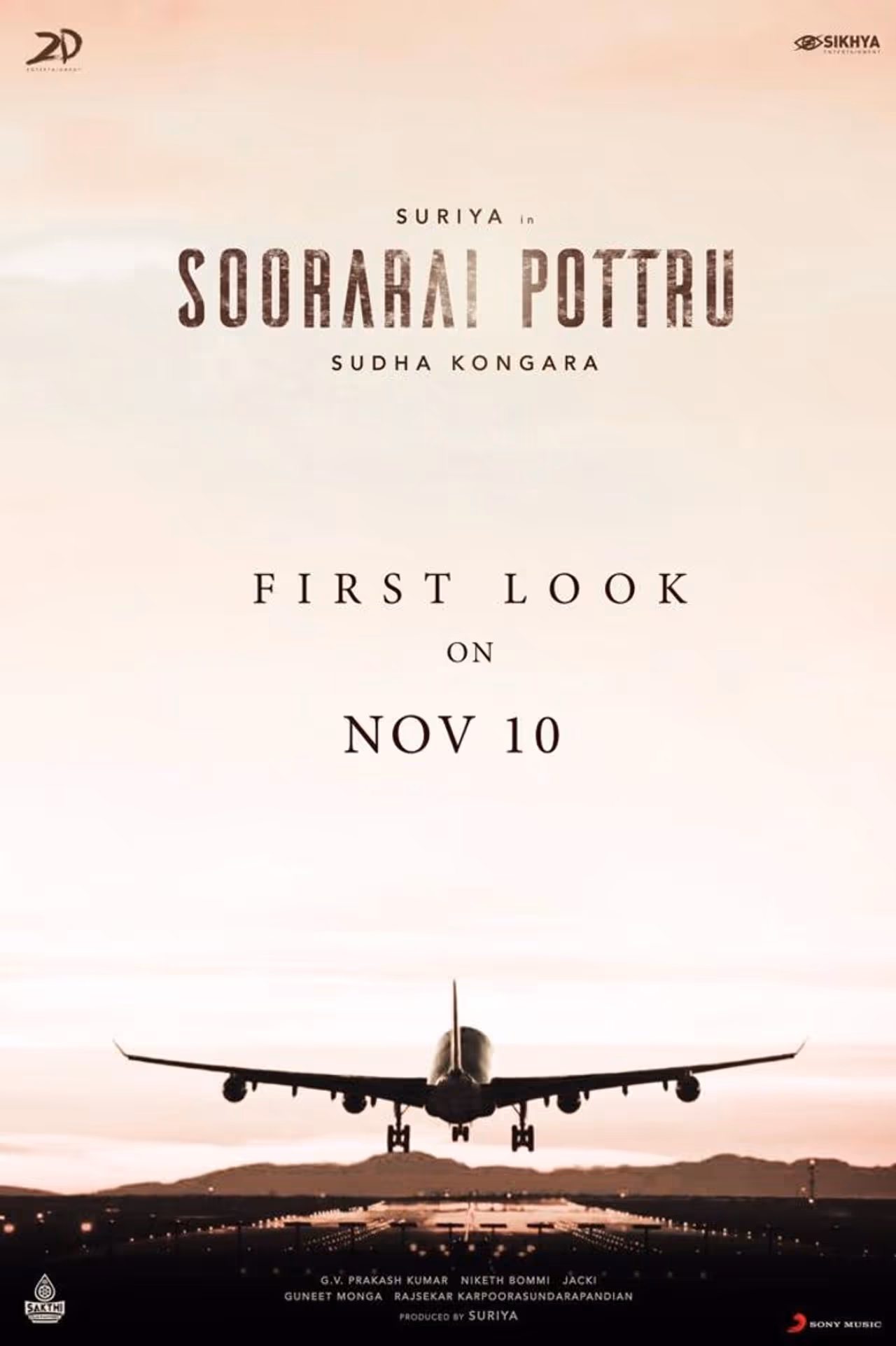 வரும் நவம்பர் 10-ம் தேதி சூரரைப் போற்று படத்தின் பர்ஸ்ட் லுக் போஸ்டர் வெளியாகும் என அதிகாரபூர்வமாக அறிவிக்கப்பட்டுள்ளது.