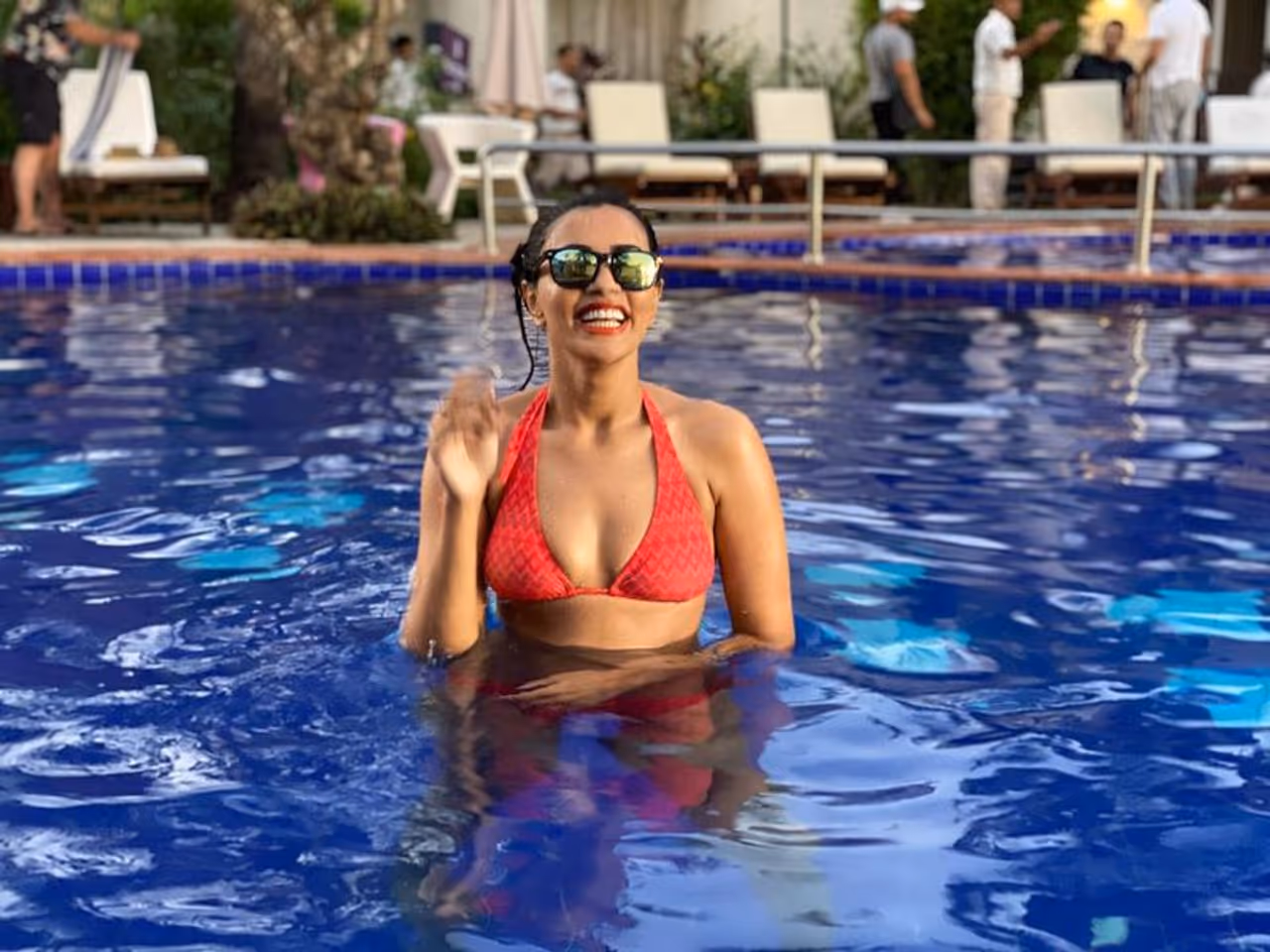 தண்ணீரில் பூத்த செந்தாமரை போல், நீச்சல் குளத்தில் நீல நிற தண்ணீரில் கண்களுக்கு விருந்து படைத்திருக்கும் அக்ஷரா கவுடாவின் இந்த பிகினி புகைப்படங்கள்தான், தற்போது ரசிகர்களின் தூக்கத்தை கெடுத்து வருகிறது. சமூக வலைதளங்களில் வைரலாகும் இந்த புகைப்படங்களைப் பார்த்து கிறங்கிப் போயிருக்கும் ரசிகர்கள், 'ஸ்டைலிஷ் தமிழச்சி' அக்ஷராவா இது! என அசந்துபோயுள்ளனர்.