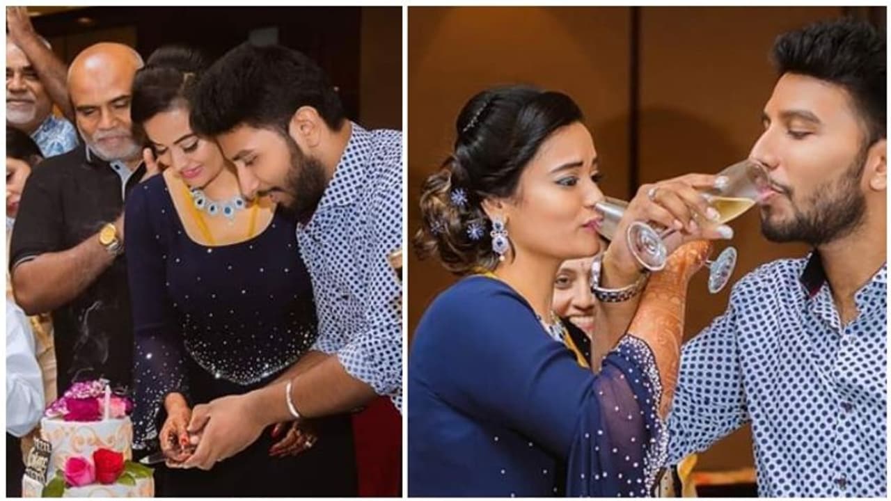 இந்நிலையில் திருமணத்திற்கு பின், இருவரும் இணைந்து இந்த வருடம் காதலர் தினத்தை கணவன் மனைவியாக கொண்டாடியுள்ளனர். இருவரும் நீல நிற உடை அணிந்து, கேக் வெட்டியும், மது அருந்தியும் கொண்டாடிய புகைப்படங்கள் தற்போது வைரலாக பரவி வருகிறது.