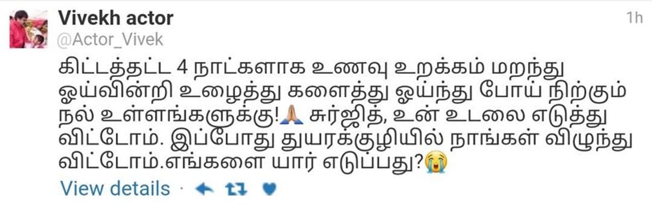 இந்நிலையில் நடிகர் விவேக் தனது டுவிட்டர் பக்கத்தில் , கடந்த 4 நாட்களாக உணவு உறக்கம் இன்று உழைத்து களைத்துப போன அனைவருக்கும் நன்றி.