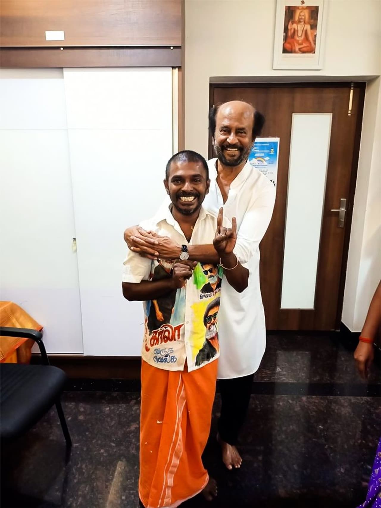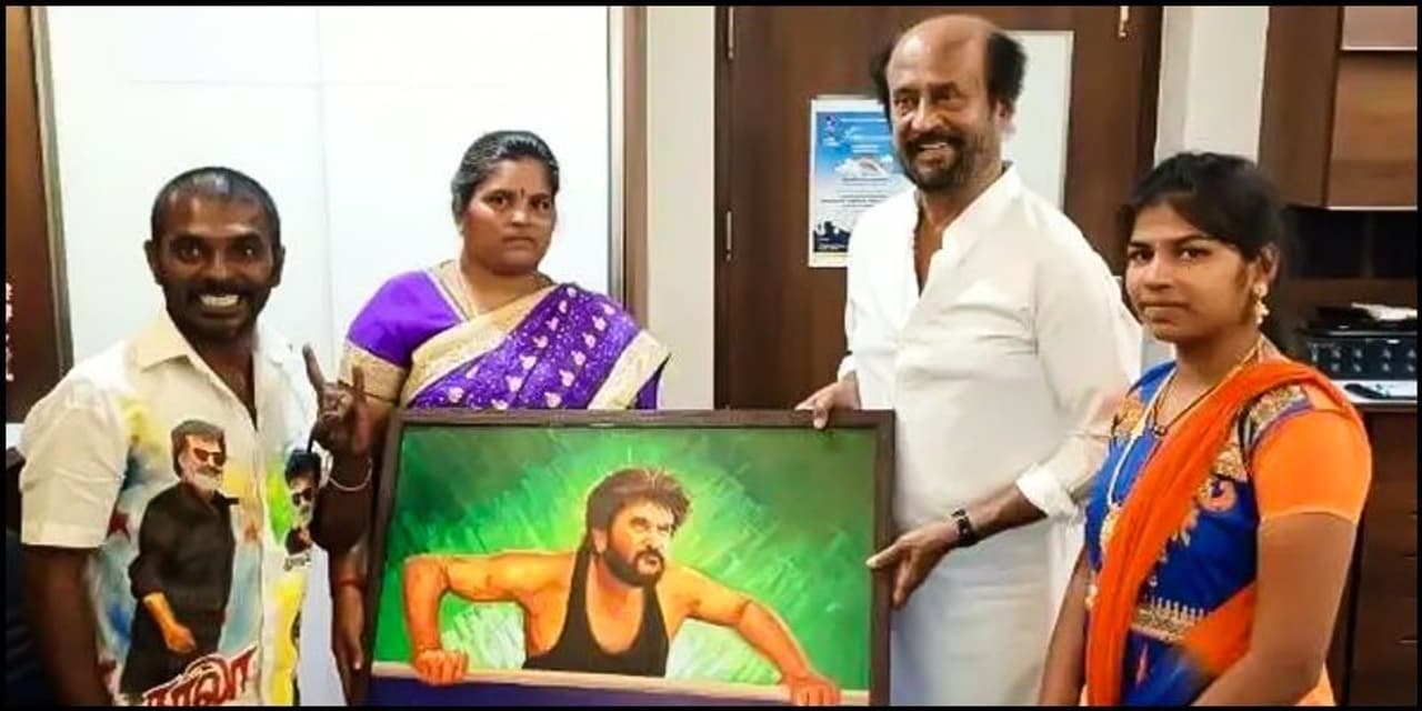 மேலும் நேரம் கிடைக்கும்போதெல்லாம் தன்னுடைய ரசிகர்களை சந்திப்பதை வழக்கமாக வைத்திருக்கிறார். அந்த வகையில் இவருடைய தீவிர ரசிகரான மதுரையை சேர்ந்த சுந்தர் என்பவரை சந்தித்துள்ளார். ஓவியரான சுந்தர் சூப்பர்ஸ்டார் தலைவரின் புகைப்படத்தை அவருக்கு பரிசாக கொடுத்து அசத்தியுள்ளார்.