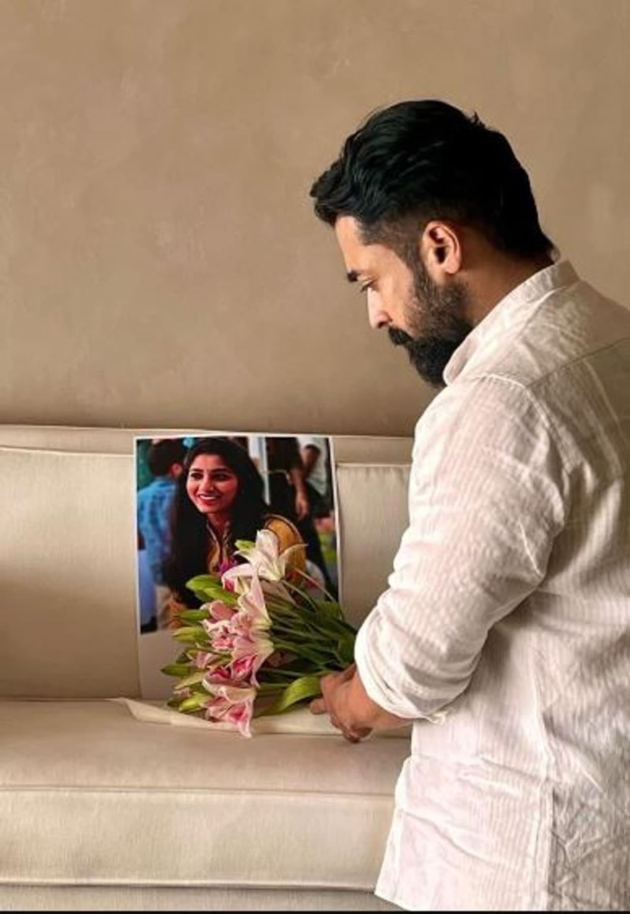 உங்களின் மகளை, நினைவு கூறும் போதெல்லாம்... என்னுடைய கைகளை பிடித்துக் கொள்ளுங்கள். உங்கள் மகள் வானத்தில் பிரகாசிக்கும் நட்சத்திரமாக இருந்து நம் அனைவரையும் பார்த்துக் கொண்டிருக்கிறாள் என்று நம்புகிறேன் என தெரிவித்துள்ளார். மேலும் ஐஸ்வர்யா குறித்து சூர்யா கூறியுள்ளதாவது, "நீங்கள் என் மீது வைத்திருந்த நேசம் என்றென்றும் நினைவில் இருக்கும். என்னை உங்களின் ஒரு பகுதியாக ஆக்கிய நீங்கள் இவ்வளவு சீக்கிரம் சென்றிருக்கக் கூடாது. உங்களுக்கும், உங்களுடைய குடும்பத்திற்கும் எனது இதயபூர்வமான இரங்கல்களை தெரிவித்து கொள்கிறேன். என கூறியுளளார். அதே போல் சூர்யா ஐஸ்வர்யாவின் புகைப்படத்திற்கு பக்கத்தில் பூங்கொத்து வைத்து, கண் கலங்கியபடி அஞ்சலி செலுத்திய புகைப்படமும் வெளியாகி உள்ளது.