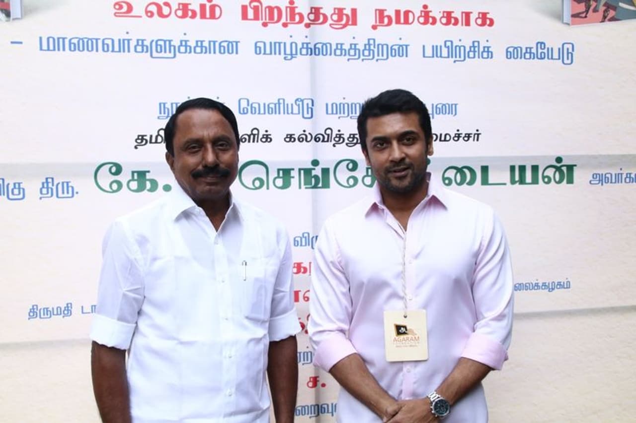 இந்த நூல் வெளியீட்டு விழாவில் நடிகர் சூர்யா, பள்ளிக்கல்வித் துறை அமைச்சர் செங்கோட்டையன், ராம்ராஜ் நிறுவனர் நாகராஜ் மற்றும் எழுத்தாளர் பேராசிரியர் மாடசாமி உள்ளிட்டோர் பங்கேற்றனர்.